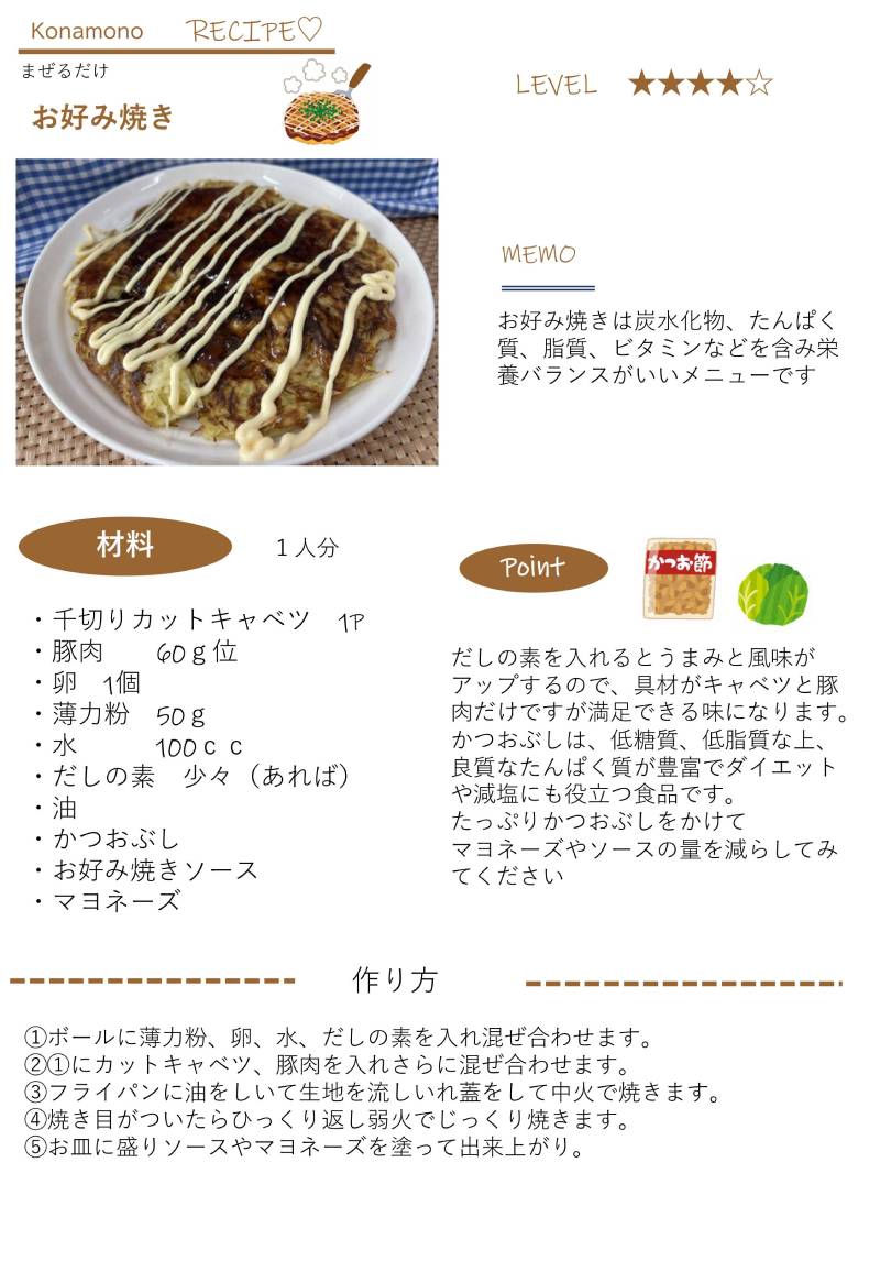 「お好み焼き」栄養科と連携して、料理教室開催♪