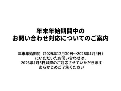 年末年始期間中のお問い合わせ対応についてのご案内 日頃より、当施設の運営に温かいご支援を賜り心からお礼申し上げます。 以下の年末年始期間中にいただいたお問い合わせは、事務的なお問い... 2025.12.26お知らせ